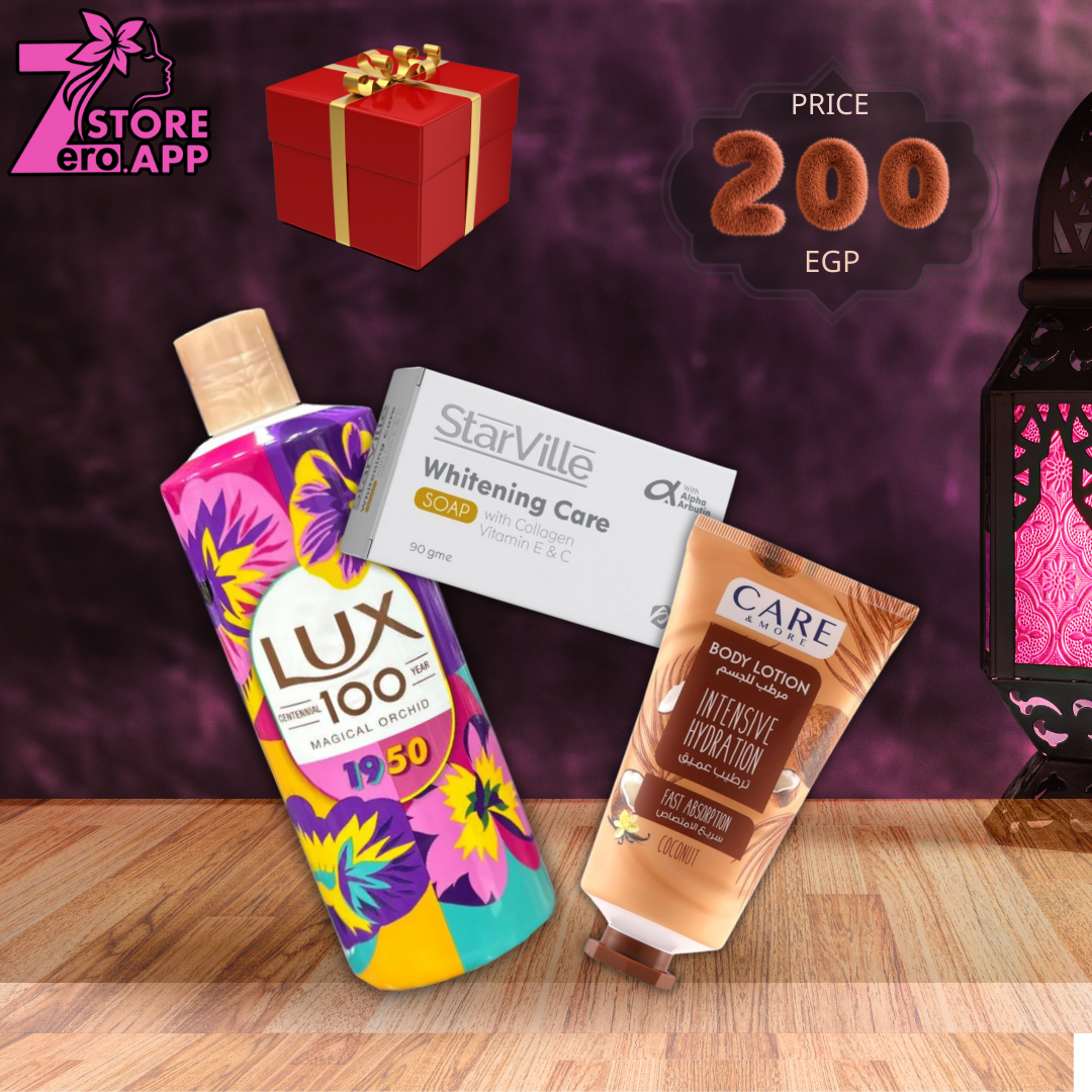 ١-كير اند مور مرطب للجسم بجوز الهند ١٥٠ مل٢- لوكس شاور سحر زهرة الاوركيد ٥٠٠ مل٣-ستارفيل صابونة تفتيح ٩٠ جم