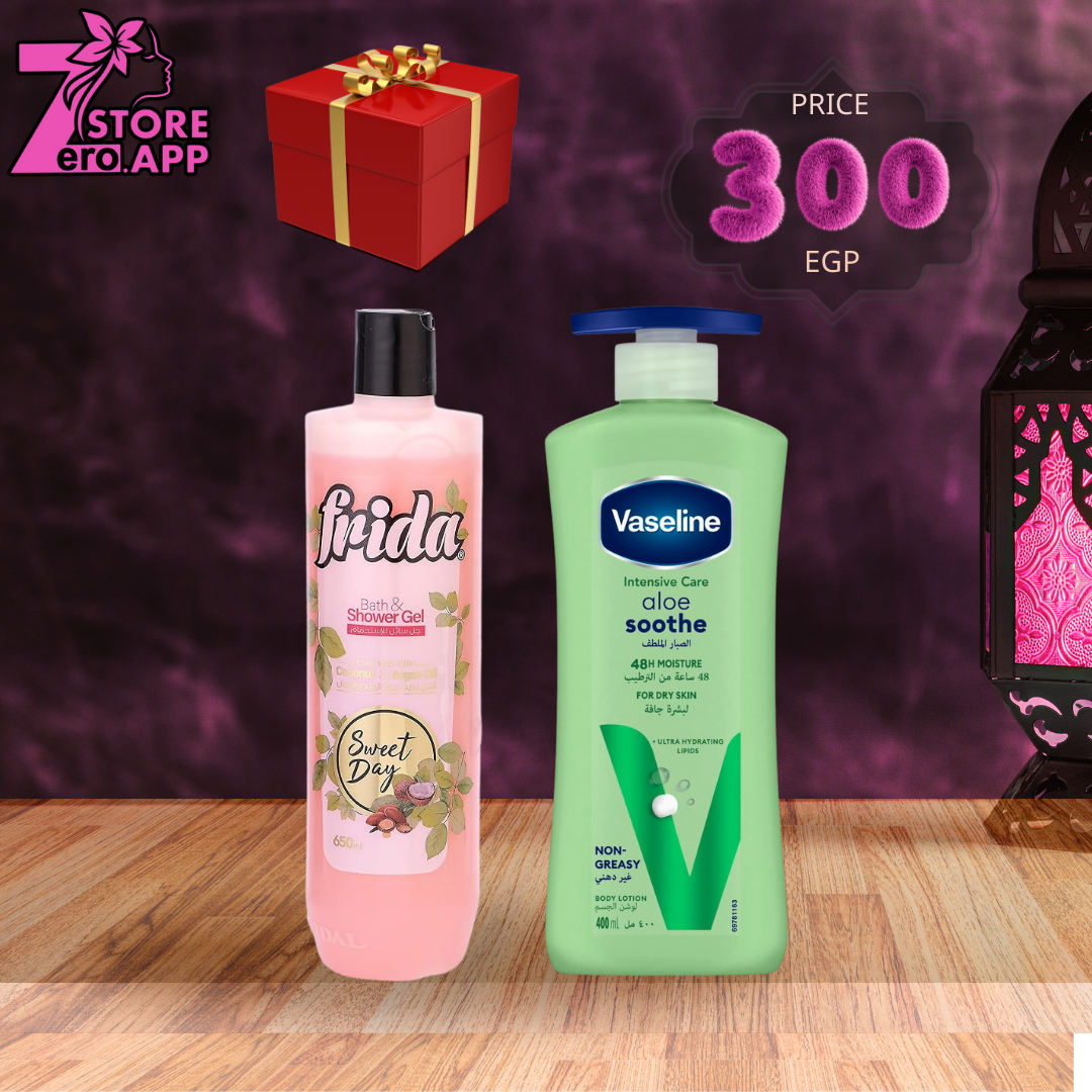 ١-فازلين لوشن اخضر سعودي ٤٠٠ جم ٢-فريدة شاور جل سويت داي ٦٥٠ مل