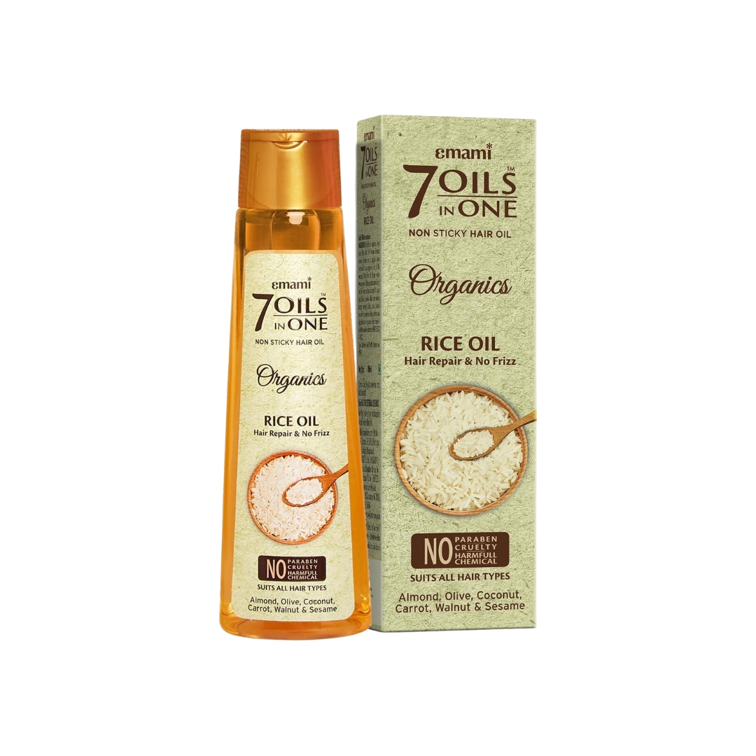 امامي زيت الارز العضوي 7 زيوت في واحد لاصلاح الشعر بدون تجعد | مغذي ومرطب | خفيف للغاية وغير لاصق | عضوي معتمد | خالٍ من البارابين والكبريتات والمواد الكيميائية الضارة | ناعم ولامع