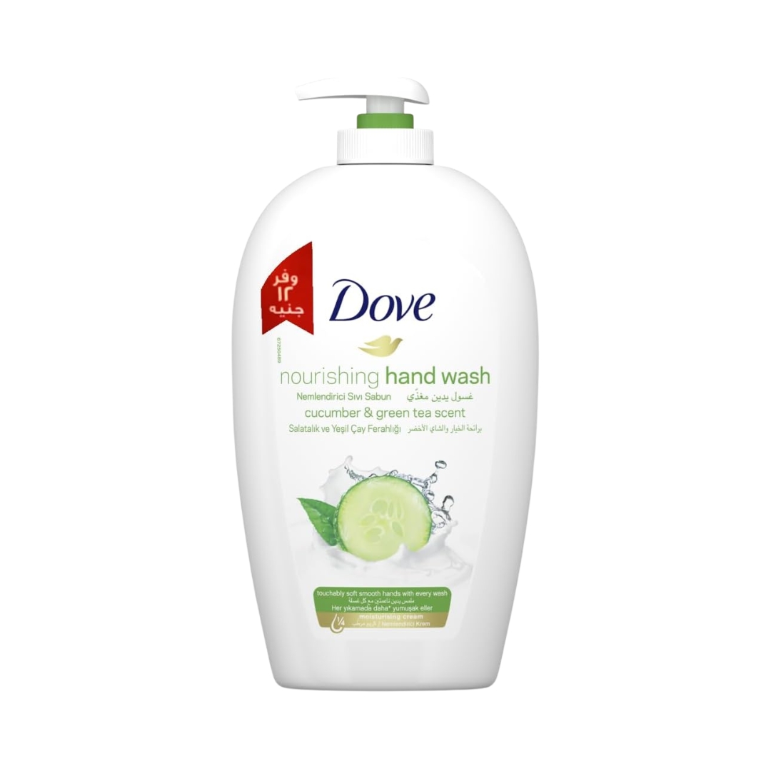 غسول يدين مغذي نوريشينج سيكريتس برائحة الخيار والشاي الأخضر من دوف لملمس ناعمتين مع كل غسلة 500 مل