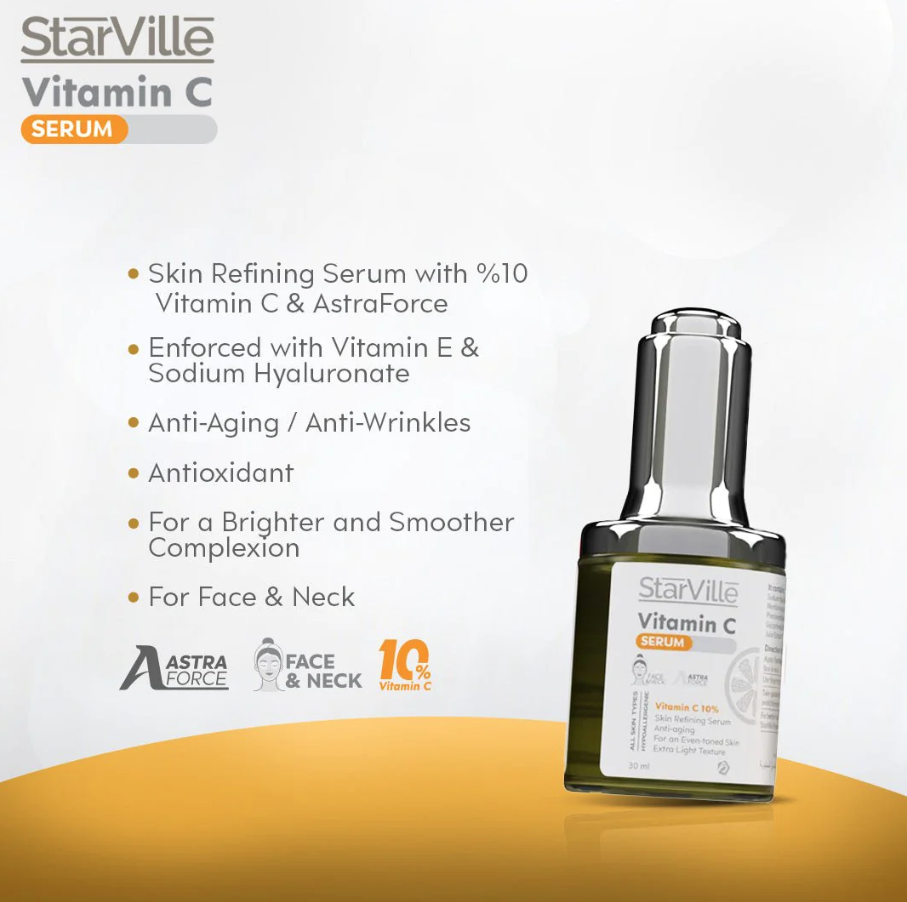 ستارفيل فيتامين سي سيروم هو منتج تجميلي يحتوي على تركيز عالٍ من فيتامين سي، وهو مركب مضاد للأكسدة يساعد على تحفيز إنتاج الكولاجين في الجلد وتحسين مظهر البشرة. يتوفر هذا المنتج بحجم 30 مل.