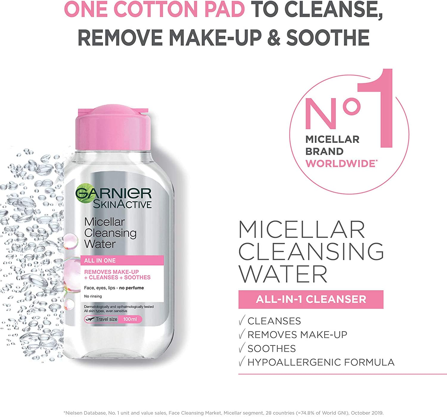 غارنييه سكين أكتيف ماء ميسيلار لتنظيف البشرة هو مستحضر لتنظيف البشرة يقوم بإزالة المكياج والشوائب والزيوت الزائدة بلطف دون الحاجة إلى الشطف بالماء. يأتي المنتج بحجم 100 مل ويعد منتجًا ممتازًا للاستخدام في السفر أو عند الانتقال من مكان إلى آخر. يستخدم الماء الميسيلار عن طريق وضعه على قطعة من القطن وتمريرها بلطف على الوجه والعينين والشفتين، دون الحاجة إلى الغسل بالماء. ويمكن استخدامه صباحًا ومساءًا كجزء من روتين العناية بالبشرة. يعد هذا المنتج مناسبًا لجميع أنواع البشرة، بما في ذلك البشرة الجافة والحساسة.