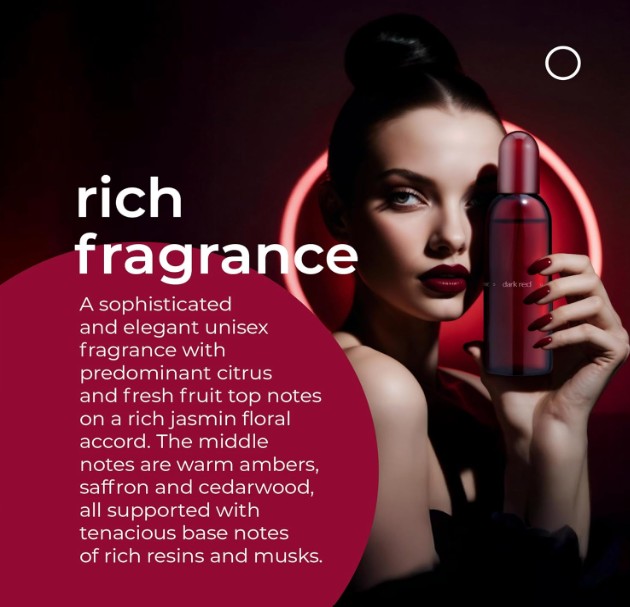 غني وأنيق وراقي - عطر كولور مي Dark Red هو عطر أنيق للجنسين يمزج بين روائح الفواكه والزهور مع روائح دافئة قوية من الراتنجات والمسك الغنية.