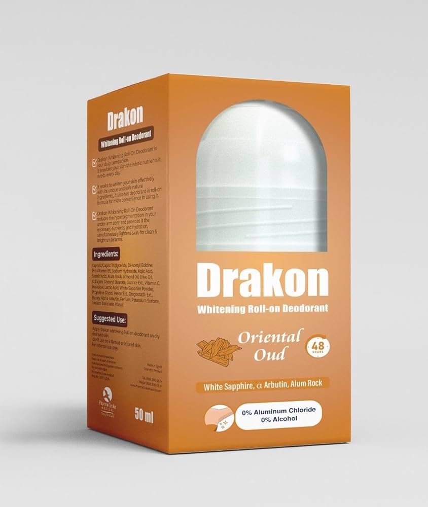 مزيل العرق دراكون المُبيض هو رفيقكِ اليومي.يُوفر لبشرتكِ جميع العناصر الغذائية التي تحتاجها يوميًا.يعمل على تبييض بشرتكِ بفعالية بفضل مكوناته الطبيعية الفريدة والآمنة، كما يحتوي على مزيل عرق بتركيبة رول أون لسهولة الاستخدام.يُقلل مزيل العرق دراكون المُبيض من فرط التصبغ في منطقة الإبط، ويزودها بالعناصر الغذائية والترطيب اللازمين، ويُفتّح البشرة في الوقت نفسه، للحصول على إبطين نظيفين ومشرقين.كابريليك/كابريك تراي جليسريد، ثنائي أسيتيل بولدين، برو فيتامين ب5، هيدروكسيد الصوديوم، حمض الكوجيك، حمض الستياريك، حجر الشبة، زيت اللوز، زيت الزيتون، الكولاجين، ستيرات الجلسرين، عرق السوس، فيتامين سي ميلاسلو، حمض اللاكتيك، مسحوق الياقوت الأبيض، بروبيلين جليكول، البطيخ، دراجوستات-11، العسل، ألفا أربوتين، عطر، سوربات البوتاسيوم، بنزوات الصوديوم، الماء.