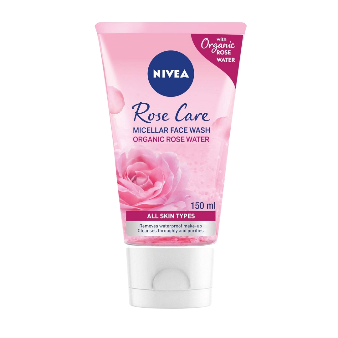 غسول الوجه ميسيلار بماء الورد العضوي من مجموعة روز كير مناسب لجميع أنواع البشرة من نيفيا، 150 مل